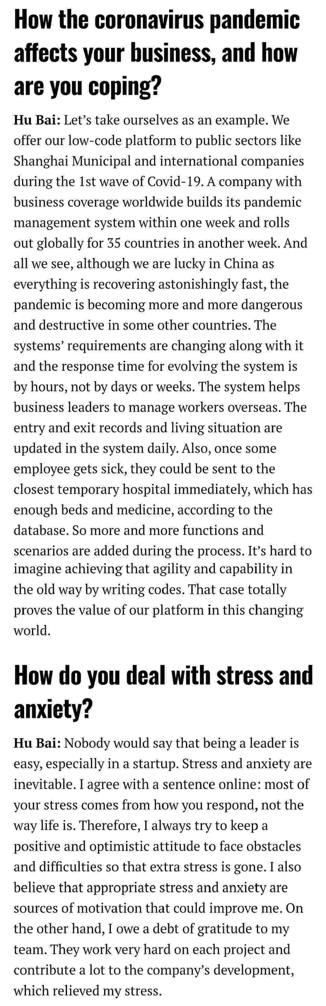 2021年年初,,,,,,,,,,,,爱湃斯科技CEO胡柏受邀接受法媒Startup.info的专访,,,,,,,,,,,,,,与Startup info的读者分享了自己的创业经历、、、、、、以及低代码平台OPPO钱包的创新之处。。。。。。