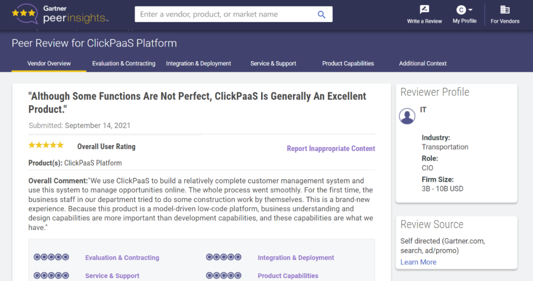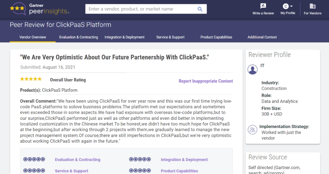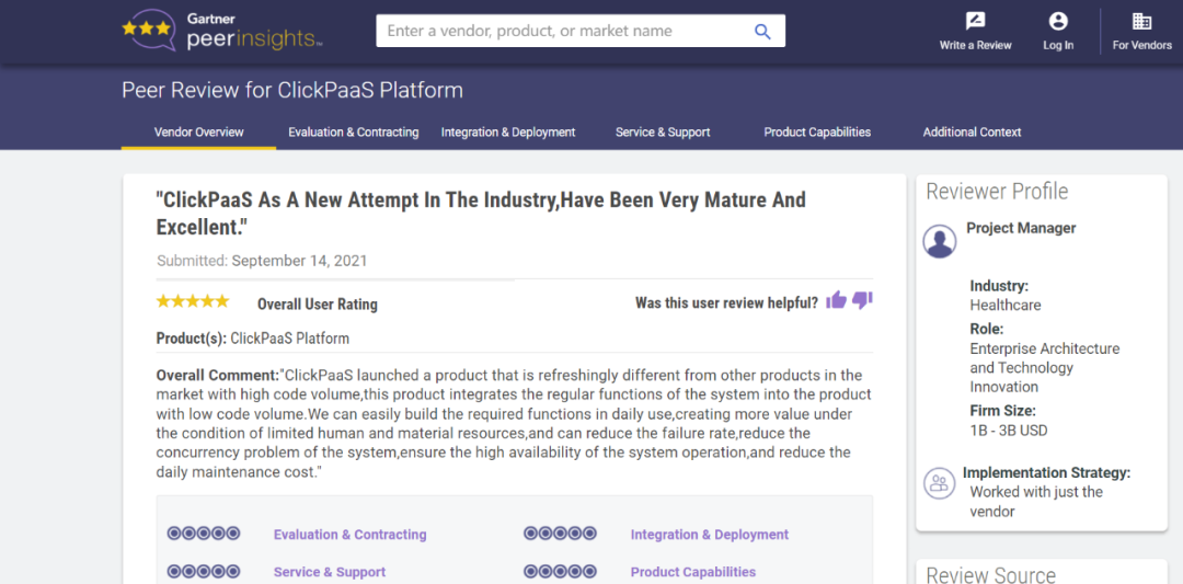 Tips::::【Peer Insights】——用户对企业IT产品和服务发布真实评价的平台。。。。。。。。。。。。。。。。目前已有355个市场,,,,,,255,000条经过验证的评价。。。。。。。。。每一条评价Gartner会针对参评企业营收规模及参评人员信息做验证、、、、、、评价内容做多维核实。。。。。。。。。